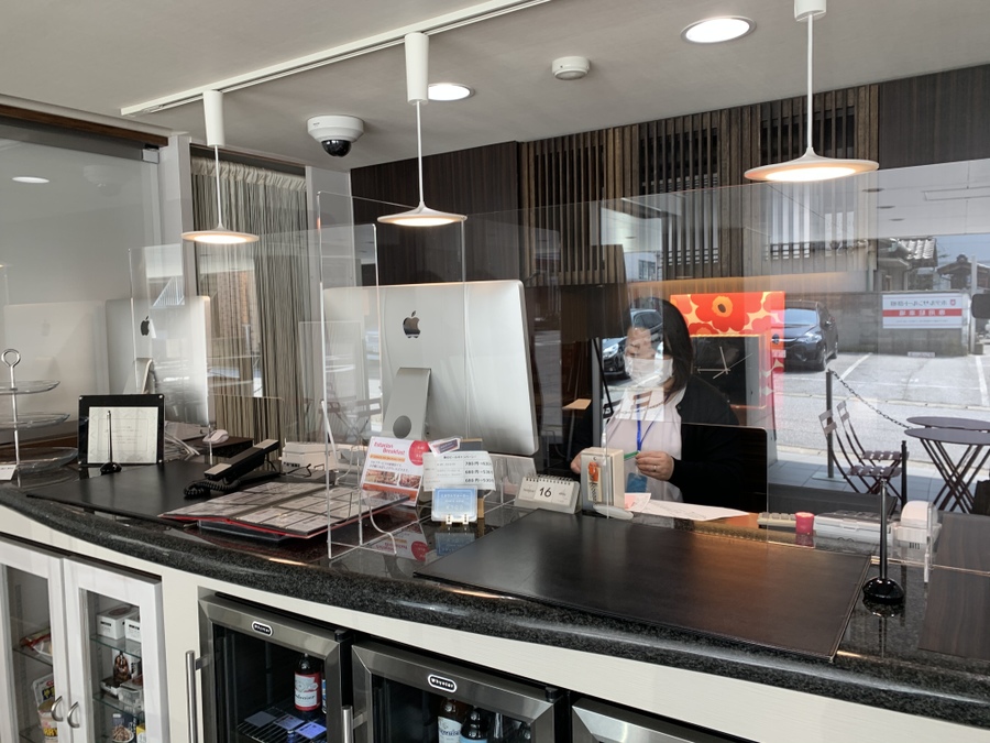 お客様がご利用になるパブリックスペースは、定期的に消毒剤で拭くなど衛生強化に努めております。また、1F2Fフロントにおきましては、エンべロープウイルスの不活性化を目的とした低濃度オゾン発生器を設置しております。